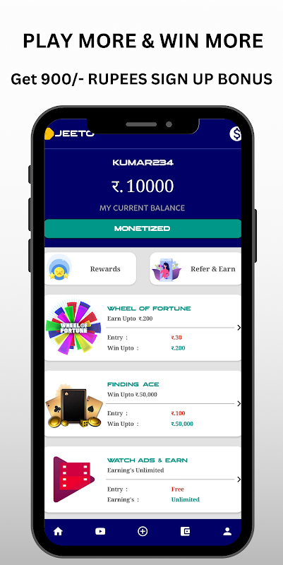 سيحصل كل مستخدم جديد على 900 / - Rupees Bonus مقابل كل مستخدم جديد ،