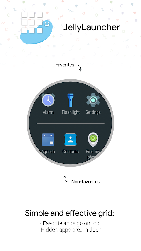 JellyLauncher عبارة عن بوابة سريعة وسهلة لجميع التطبيقات المثبتة على جهازك القابل للارتداء. يعرض JellyLauncher جميع تطبيقاتك في تصميم بسيط، مع وضع التطبيقات المفضلة في الأعلى. 3x3، 2x2 أو قائمة بسيطة، والخيار متروك لك! التمرير الأقل يعني وصولاً أسرع إلى تطبيقاتك!