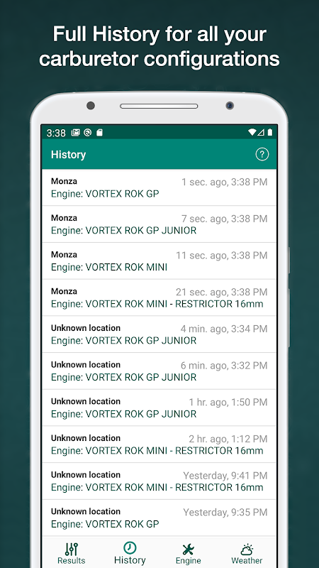يوفر هذا التطبيق ، باستخدام درجة الحرارة والارتفاع والرطوبة والضغط الجوي وتكوين المحرك الخاص بك ، توصية حول التكوين الأمثل للمكربن (النفث) وشمعة الإشعال لاستخدامها في الكارتينج محركات Vortex ROK (ROK MINI ، ROK GP JUNIOR ، ROK GP SENIOR) ، التي تستخدم مكربن Dellorto VHSH 30 و PHBG 18.