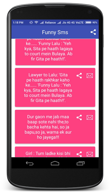 Complete Offline & FREE of all sms collections having in different-different Category !! collection of latest text messages, forwards, quotes & top jokes in one app for android phones!!