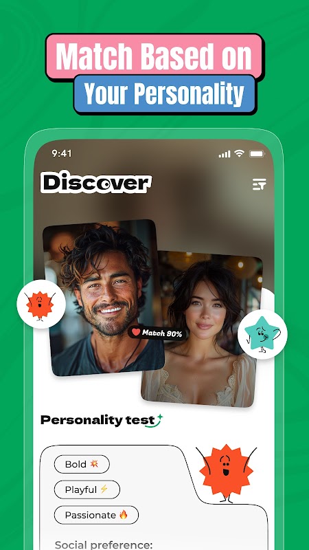 تأخذ اللقطات خطوة إلى الأمام، باستخدام نتائج اختبار الشخصية الخاصة بك لمطابقتك مع الأشخاص الذين يتوافقون حقًا مع قيمك وشخصيتك. لا مزيد من التخمين - مجرد اتصالات حقيقية تبدو صحيحة منذ البداية