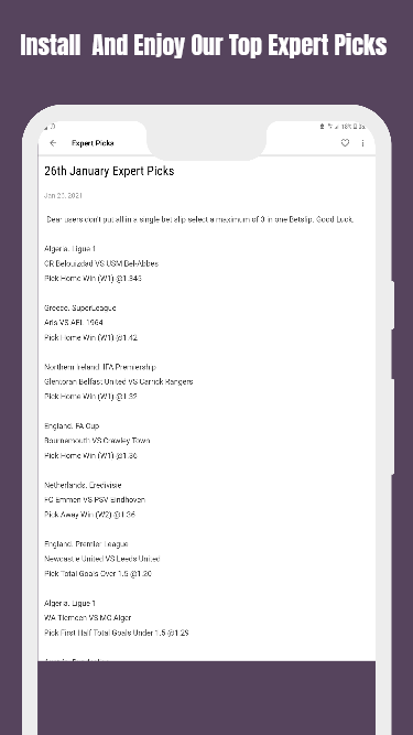 This free app is about football Predictions. Predictions are based on years of statistical data as well as the latest news and information on different teams.