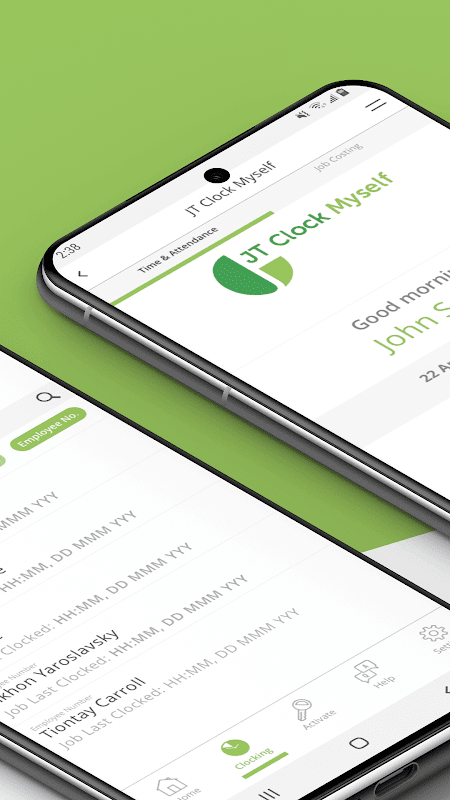 "JT Clock Myself" هو حل تسجيل الوقت للفرد. يمكن أن يعمل التطبيق وفقًا لجدول المنطقة ، والذي يمكن للمدير إعداده لهذا اليوم أو بعيدًا في المستقبل. سيؤدي هذا إلى إنشاء قائمة بالأماكن والأوقات التي من المتوقع أن يقوم الموظف بتسجيل الدخول والخروج فيها. إذا فات تسجيل الوقت ، فسيقوم التطبيق بإنشاء استثناء. يستخدم التطبيق إما القياسات الحيوية الموجودة على متن الطائرة أو يمكن للشخص "تسجيل الدخول" من خلال النقر على زر في التطبيق.