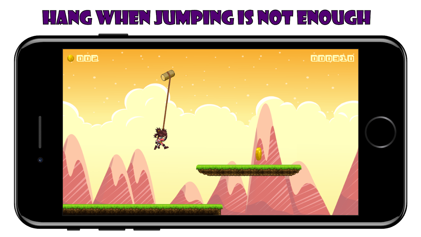Jump & Hang is a simple but addictive old-school platformer. The game is controlled just by tapping the screen and the player should be focused only on jumping at the correct moment and the accuracy while releasing the hook.