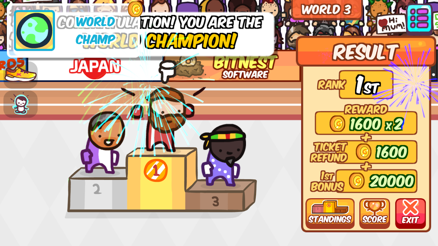 كن بطل العالم في الوثب الطويل في لعبة المضمار والميدان الشيقة هذه. تنافس في الساحة لكسب العملات، واحصل على ترقيات لتحسين قفزتك، وتدرب لصقل مهاراتك، وارتقِ في مسيرتك المهنية من المستوى المحلي إلى المستوى العالمي لتحقيق هدفك.