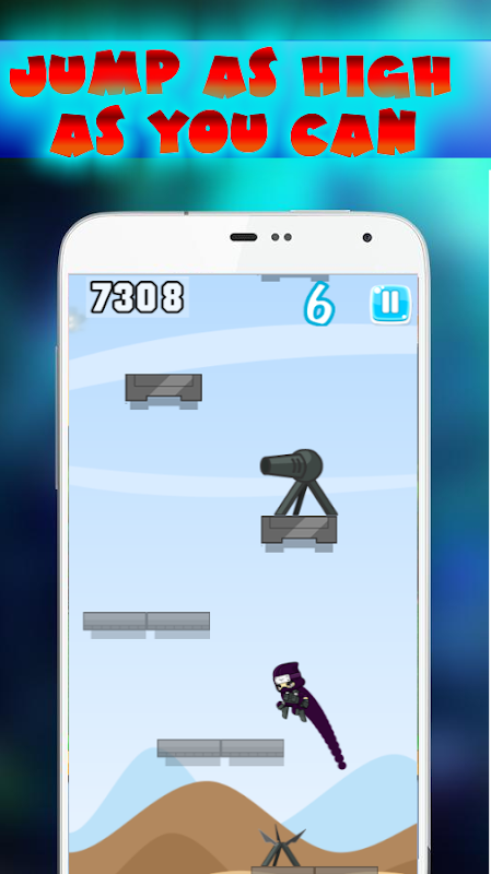 لعبة لديها اتصال بديهية الضوابط شاشة الألعاب. بمجرد لمسة على الشاشة للقفز فوق المنصات. تم تعيين النينجا كل لرحلة أكثر مغامرة لتوسيع نطاق أعلى مثل النينجا يمكن. نتوقف لحظة لتحليل منصة وجعل قفزة مثالية. اضغط على الشاشة مرتين من أجل تحقيق قفزة مزدوجة والوصول إلى منصات أعلى. الاستعداد للرحلة النينجا مثيرة على منصات.!