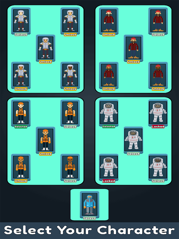 You may help Astro Naut, Lord Knight, Hips Timber, Pro Builder and Alp Climber to jumping onto platforms. And reach the space. 🌌
