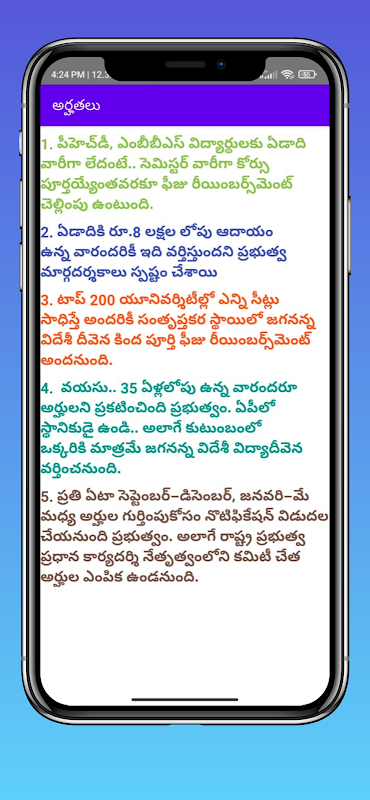 يوفر هذا التطبيق معلومات حول مخطط Jaganna videsi vidya deevena.