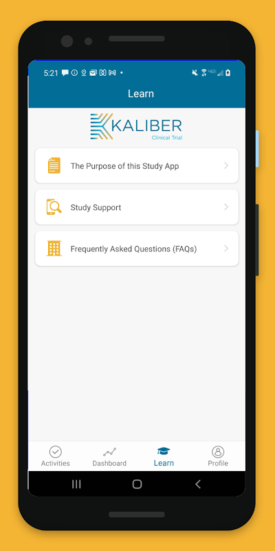 ستستخدم هذا التطبيق لإكمال استطلاعات الرأي حول صحتك وإجراء زيارات افتراضية للرعاية الصحية عن بُعد (مكالمات فيديو) من خلال موقع الدراسة الخاص بك