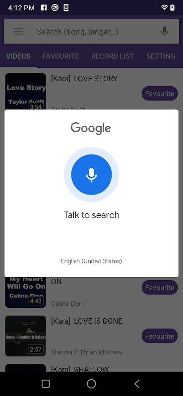 - تطبيق يتطلب RECORD_AUDIO إذن وWRITE_EXTERNAL_STORAGE إذن لتسجيل الأغاني الكاريوكي، وحفظ لتخزين.