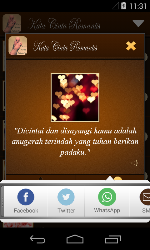 يمكنك الحصول على إشعارات بكلمات الحب كل يوم لأن هناك ميزة كلمة الحب اليوم. يمكنك أيضًا مشاركة هذه الكلمات بسهولة نظرًا لوجود ميزة مشاركة عبر الرسائل القصيرة ووسائل التواصل الاجتماعي الأخرى.