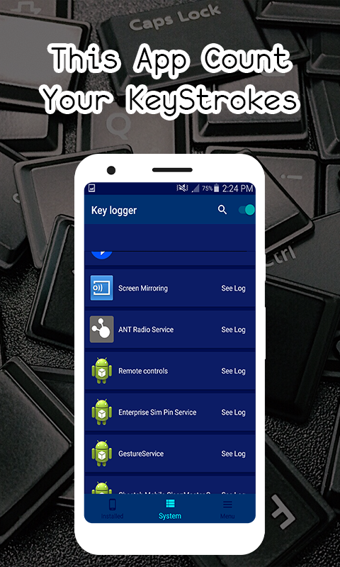 This keylogger uses a custom keyboard and accessibility service which increases the accuracy of recording keystrokes. This app can work without changing the phone's keyboard.