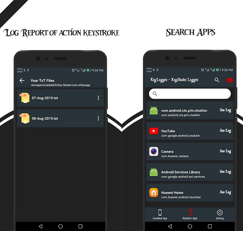 الآن يحتاج الناس يومًا إلى تخزين كل ضغطات المفاتيح التي حدثت في هواتفهم المحمولة ، لذلك نقدم مثل هذا التطبيق الرائع كيلوغر - مسجل ضغط المفاتيح الذي يمكنك من خلاله بسهولة تسجيل كل ضغطات المفاتيح أو الآلة الكاتبة إلى ملف txt. يسجل keylogger كل المفتاح والإجراء الذي ينقره المستخدم على لوحة المفاتيح الخاصة به ويخزن أيضًا كل نقرة من خلال استخدام خدمات إمكانية الوصول. الغرض الرئيسي من keylogger هو مراقبة جميع الإجراءات والسكتات الدماغية وعمل سجل لها.