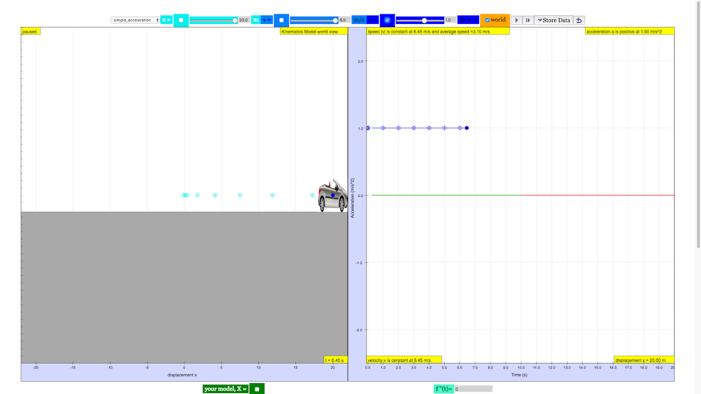 هذا التطبيق هو إنتاج الأعداد الحقيقية لتتزامن مع البيانات العالم الحقيقي من سحب الجاذبية في 9.81 م / ث ^ 2 مع بعض الأخطاء العشوائية محاكاة النتائج الحقيقي ومسجل بيانات. هناك طرق التدريس النمذجة الرياضية في صلب محاكاة للطلاب لجعل جهد لتمثيل الفيزياء مشابهة لنماذج الجسيمات تعقب ل.