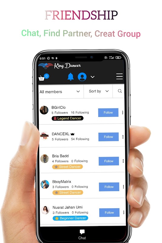King Dancer allows you to meet and chat new partners so you can improve your dance skills or go dancing anytime you want.