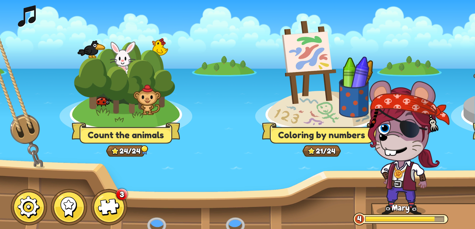 تحتوي لعبة الرياضيات التعليمية هذه على أنشطة وألغاز للصفوف من رياض الأطفال وحتى الصف الثالث. يختار اللاعب شخصية ويسافر من جزيرة إلى أخرى لمواجهة تحديات مثل عد الحيوانات في الغابة ، ومطابقة عدد الأصدقاء ، ورسم نقطة إلى نقطة ، والتلوين بالأرقام ، واستكمال الأنماط ، ولعب لعبة مطابقة الذاكرة. احصل على النجوم ورفع مستوى الشخصية من خلال إكمال مراحل اللعبة. هناك أيضًا ميداليات وقطع من أحجية الصور المقطوعة لجمعها كمكافآت إضافية وتشجيع للطفل.