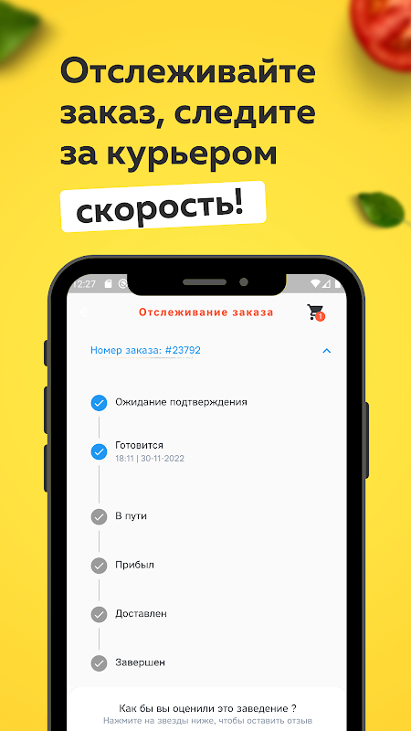 بمجرد تقديم طلبك، لن يطول الانتظار. سيصل الطلب في المتوسط خلال 30-60 دقيقة - حتى الجرجير الموجود على البيتزا لن يكون لديه الوقت ليذبل.