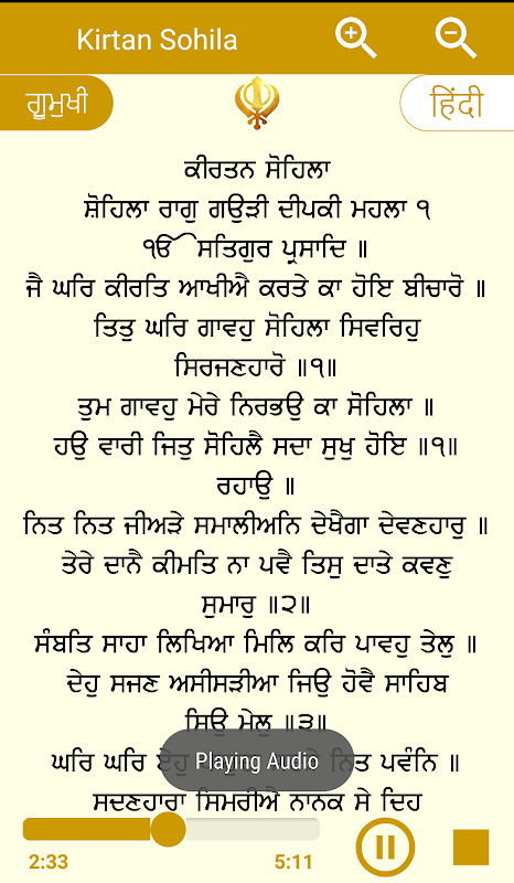 * يحتوي التطبيق على مسار Kirtan Sohila الكامل بلغات مختلفة.