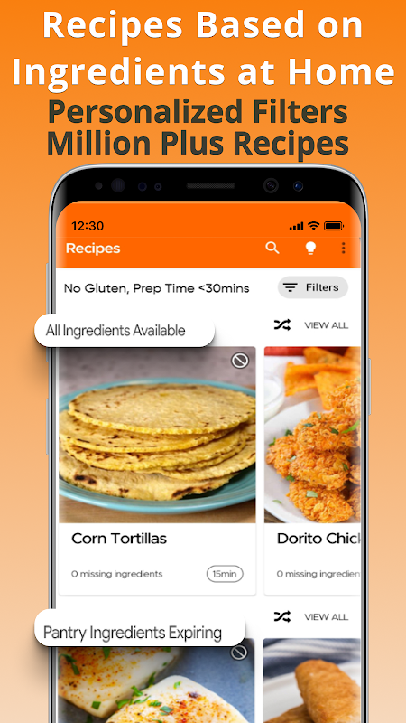 - ابحث عن وصفات صحية للطهي مرتبطة بمخزون طعامك، أو ابحث عن وصفات حسب المكونات.
