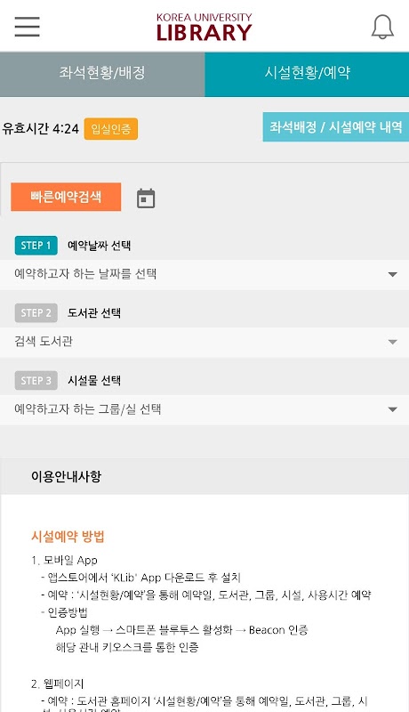 KLIB - 고려대학교 도서관 시설좌석 예약 시스템 1.18.15