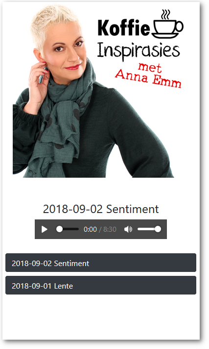 Daaglikse audio inspirasie-boodskappe op jou foon deur skrywer en sakevrou Anna Emm. Registreer vir 14 dae gratis trial.