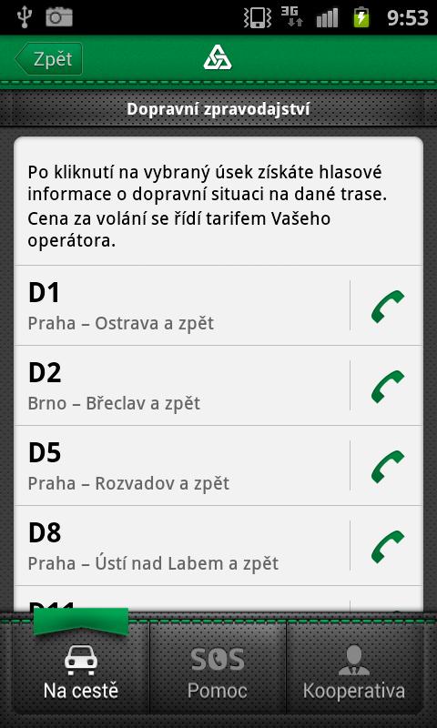 - hlasové dopravní zpravodajství na vybraných silnicích v ČR,