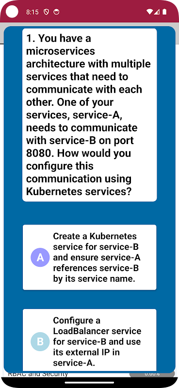 أتقن Kubernetes وتفوق في اختبارات الشهادات الخاصة بك من خلال تطبيق Kubernetes Exam Practice! تم تصميم هذا التطبيق خصيصًا لمحترفي Kubernetes الطموحين، ويقدم مجموعة شاملة من أسئلة التدريب المستندة إلى سيناريوهات العالم الحقيقي. عزز مهاراتك واختبر معرفتك واكتسب الثقة اللازمة للنجاح في اختبارات مدير Kubernetes المعتمد (CKA) ومطور تطبيقات Kubernetes المعتمد (CKAD).