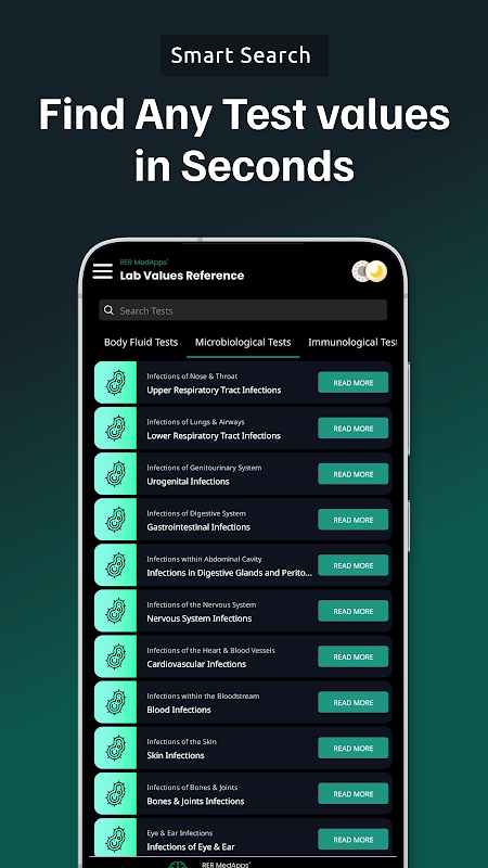 مرجع شامل لفحوصات الدم والبول والفحوصات الخاصة الشائعة الاستخدام في الممارسة السريرية. صُمم هذا التطبيق لطلاب الطب والأطباء والممرضين والعاملين في مجال الرعاية الصحية، ويساعدك على التحقق بسرعة من النطاقات الطبيعية والوحدات الدولية والقيم الحرجة مع شرح سريري واضح.