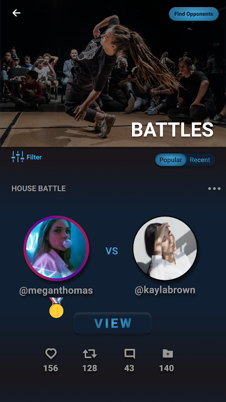 Find dancers to battle that matches your experience level and preferred dance style.