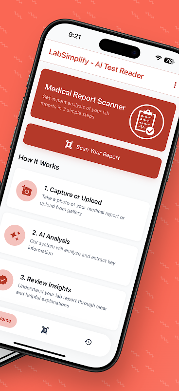 يُسهّل تطبيق LabSimplify تفسير صور التقارير الطبية بتحويلها إلى ملخصات منظمة وسهلة القراءة. صُمم التطبيق خصيصًا لمن يرغب في مزيد من الوضوح لنتائج فحوصاته، حيث يوفر شرحًا مباشرًا ومباشرًا دون الحاجة إلى لغة تقنية.