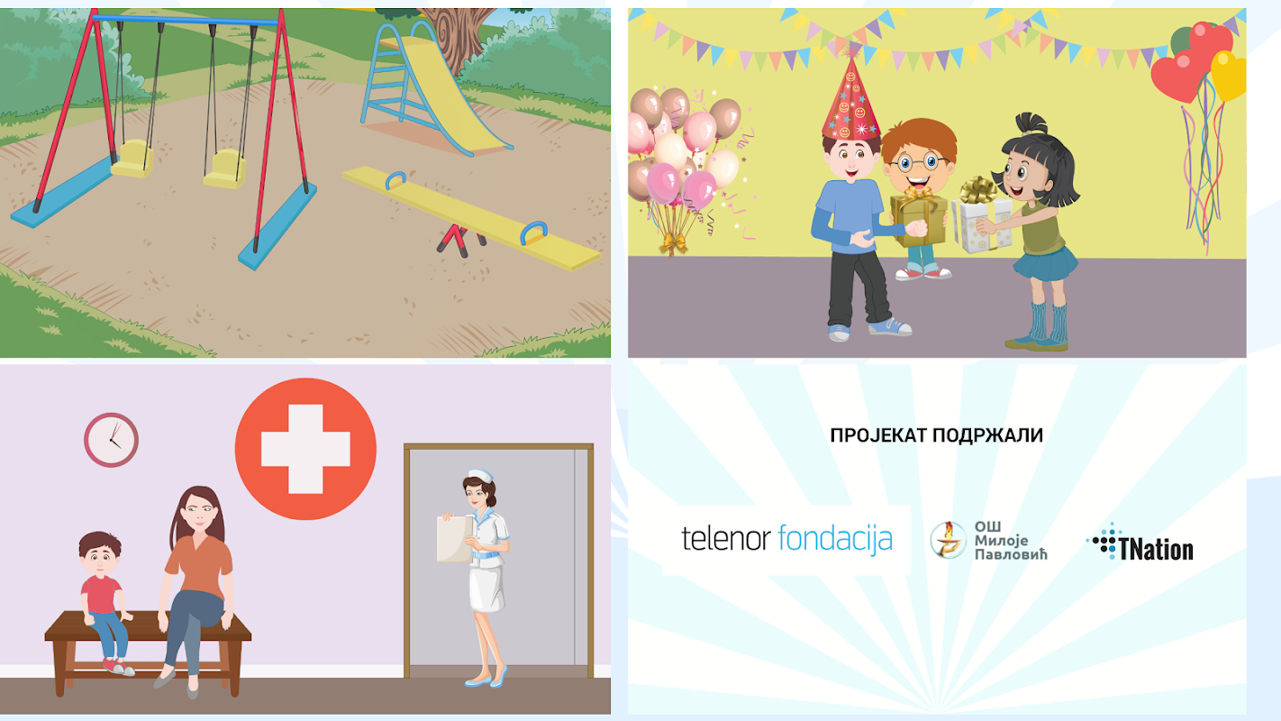 Ovakav طرف aplikacije olakšava razumevanje događaja جيري vizuelne animacije motivišu DECU زا راد ط učenje. S obzirom غ široku upotrebu ط dostupnost mobilnih telefona ط قرص računara KOD roditelja، وسميم تيم ط KOD dece، البويضات aplikacija سي موز svakodnevno koristiti ش navedenim situacijama (ش parku، prevozu، KOD lekara، غ ط rođendanu KOD kuće).
