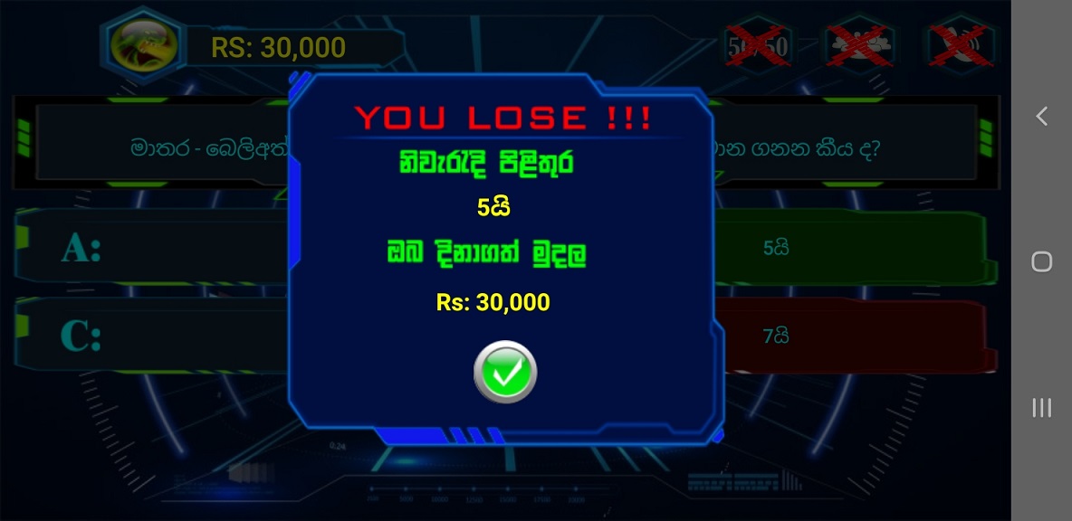الحقيقة الأخرى المثيرة للاهتمام هي أن تطبيق Lakshapthi Game مصمم وفقًا لشكل برنامج الواقع المعروف "من يريد أن يكون مليونيراً؟" لذلك سيكون لديك تجربة مدهشة لا تنسى باستخدام هذا التطبيق.