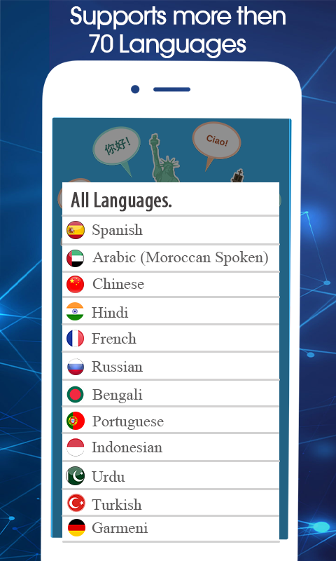 ترجمة جميع اللغات بالصوت والكاميرا هو تطبيق مترجم فوري يمكن أن يتيح لك ترجمة النص من أي لغة إلى أي لغة على الفور عن طريق الصوت أو الكاميرا. يجعل المدخلان الصوتيان والكاميرا من هذا التطبيق تطبيق ترجمة فوريًا وفوريًا يمكنك من خلاله ترجمة الكلام أو ترجمة الشاشة. قم بتنزيل ترجمة جميع اللغات وابدأ في التحدث وترجم الآن! إذا كنت بحاجة إلى ترجمة الإنجليزية إلى الإسبانية أو ترجمة الإسبانية إلى الإنجليزية فقط استخدم تطبيق الترجمة الخاص بنا. إذا كنت في أي بلد حيث لا يمكنك التحدث بلغة nativo ، فقم بتنزيل ترجمة جميع اللغات بالصوت والكاميرا الآن لجعل الحياة أسهل. علاوة على ذلك ، إذا كنت تستطيع القراءة ولكن لا يمكنك الترجمة ، فما عليك سوى استخدام مترجم الكاميرا. مسح الصورة ، انقر فوق الكلمة أو الجملة التي تريد ترجمتها واضغط على زر الترجمة. تساعدك ميزة الترجمة الصوتية في هذا التطبيق في الترجمات الفورية حيث لا يمكنك الكتابة مثل القيادة أو التحدث إلى شخص ما وميزة مترجم الكاميرا في التطبيق التي تمكنك من ترجمة النص من صورة يمكنك من خلالها ترجمة صورة.