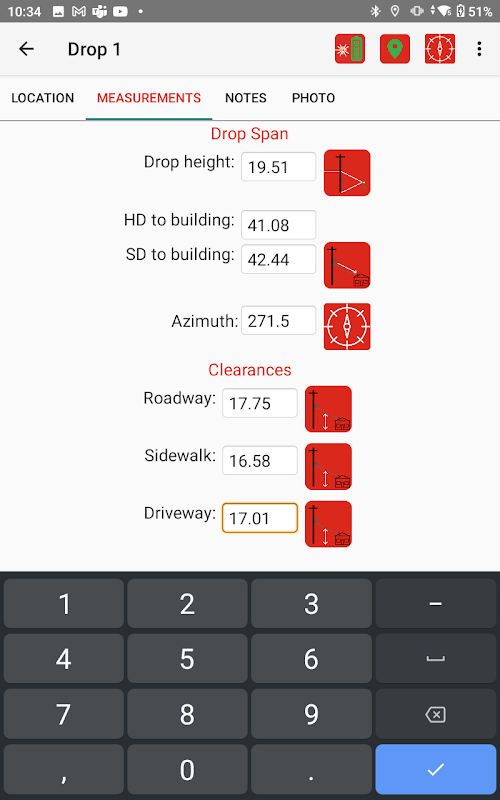 قم بفحص أو تدقيق قطرات الخدمة الكهربائية أو الاتصالات إلى المباني بسرعة باستخدام تطبيق TruPulse الليزري وتطبيق Service Drop الخاص بشركة LaserTech. جمع المعلومات عن الموقع ونوع المعدات؛ ثم قم بإجراء جميع قياسات السقوط والمسافة والتخليص باستخدام الليزر - كل ذلك من مكان آمن. لم تعد هناك حاجة إلى معدات السلامة وعصي الارتفاع وعجلات القياس! قم بجمع جميع قياسات انخفاض الخدمة الخاصة بك بسهولة، وقم بتسجيلها إلكترونيًا ثم قم بإنشاء وثائق لتقديمها إلى الهيئات التنظيمية أو العميل.