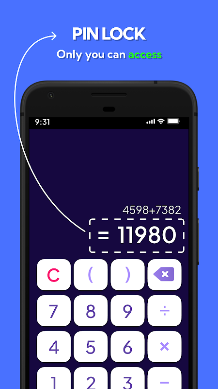 تعكس أيقونة التطبيق الآلة الحاسبة العادية، ويتم دمجها بسلاسة على جهازك. يتطلب الوصول إلى القبو المخفي طريقة إدخال كلمة مرور سرية، مما يضمن سريتها. أنت فقط ستعرف بوجود هذه المساحة الخاصة.