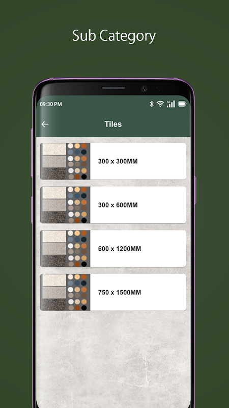 فئات المنتجات المدرجة في التطبيق هي بلاط البورسلين مثل البلاط الرخامي والبلاط الحجري والبلاط المعاصر الذي يتكون من العديد من السلاسل التي تطور UpToDate والأدوات الصحية الفاخرة بما في ذلك حوض المطبخ وخزانة الحمام وحوض الاستحمام البسيط وحوض التدليك والمرحاض البسيط والذكي مرحاض ومغسلة ومبولة بسيطة ومبولة آلية وخلاط دش بسيط وخلاط دش فاخر ومجفف أيدي وحامل مناديل وغيرها.