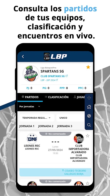 التطبيق لمحبي دوري BásquetPro في الإكوادور.