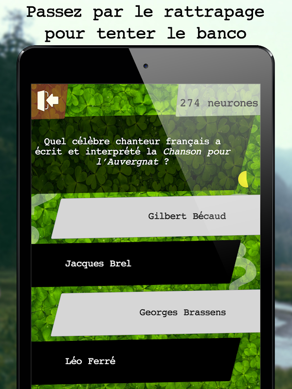 مستوحاة من لعبة الراديو الشهيرة، وهنا هي لعبة من ألف الخلايا العصبية. ونحن هنا لا يفوز يورو ولكن إنفاق المادة الرمادية!