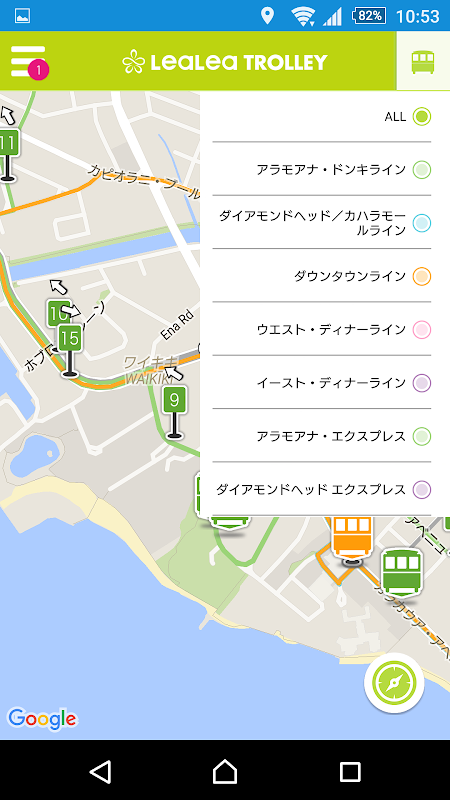 1)LeaLeaトロリーのバス、バス停の位置の確認
