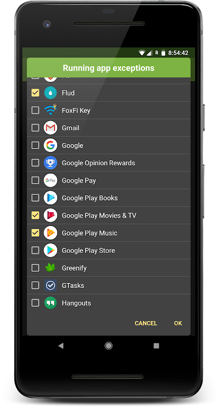 • تعيين استثناءات لبعض التطبيقات قيد التشغيل (مطلوب الجذر على 8.0+)