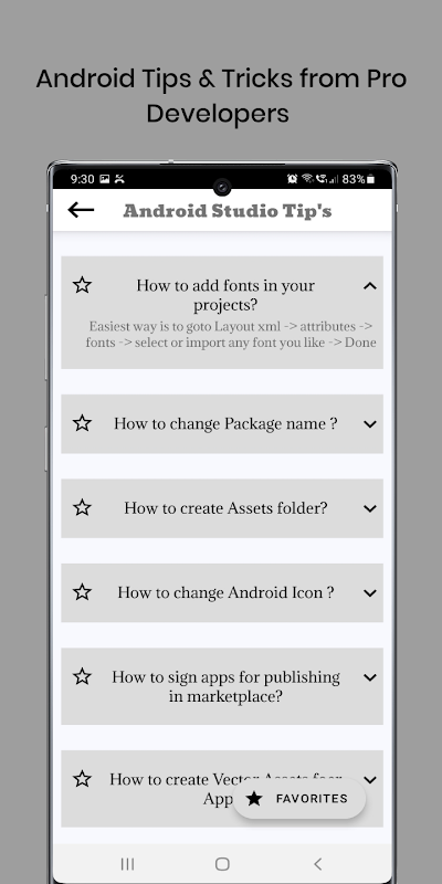 يحتوي هذا التطبيق أيضًا على مفاهيم واختصارات Android Studio لجعل الترميز أسهل وأقل استهلاكا للوقت.