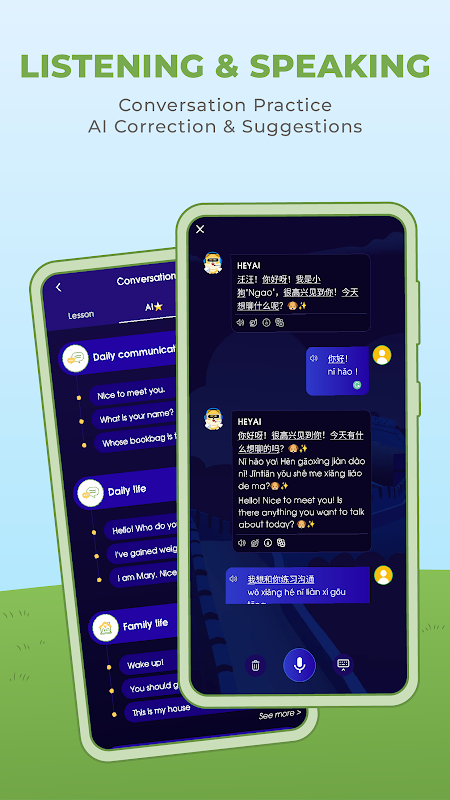 تدرب على المحادثات اليومية مع HeyAI، مدرس اللغة الغامر الخاص بك.
