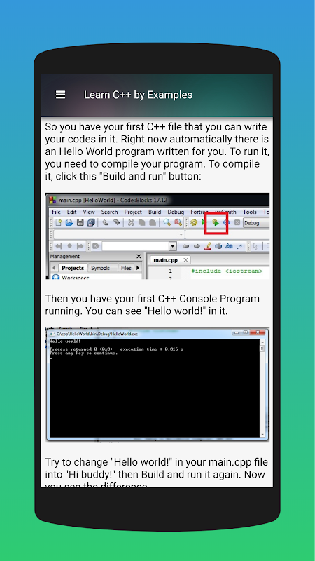 All the examples are for command line C++ program. So you can type the codes in your desktop IDE, then build and run it in command line program.