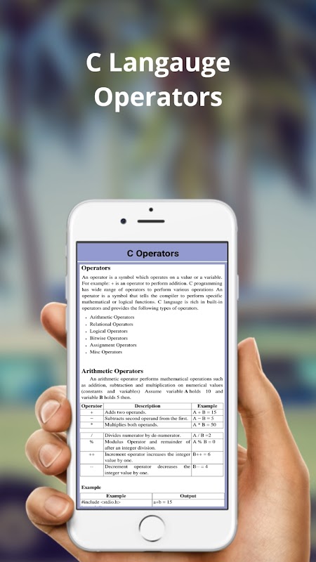 Learn C Programming & Tutorial is all in one Application to learn C Programming Language (C Language) which included Theory with many C Programs with output.