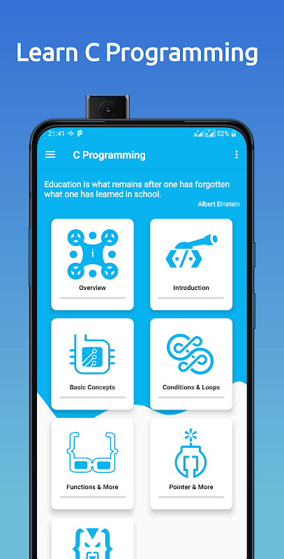 Learn C Programming application has Motivation Quotes, so each time you are here to learn. You will get a boost of energy or dopamine to Practice and Learn to code with sharp focus and attention to the content.
