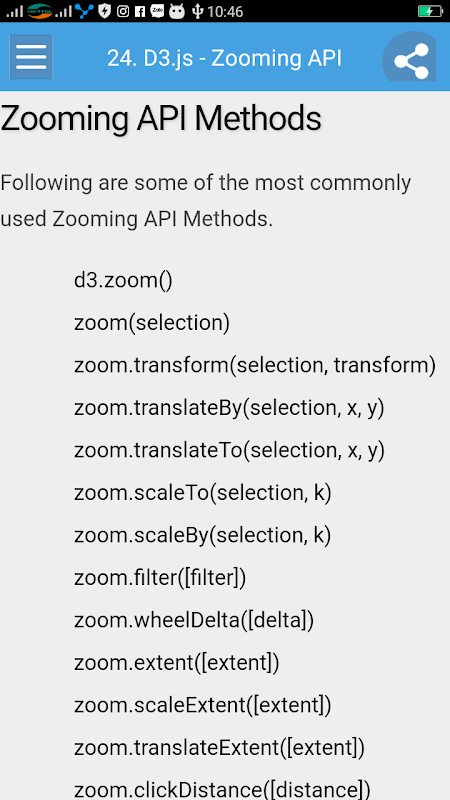 D3 stands for Data-Driven Documents. D3.js is a JavaScript library for manipulating documents based on data. D3.js is a dynamic, interactive, online data visualizations framework used in a large number of websites. D3.js is written by Mike Bostock, created as a successor to an earlier visualization toolkit called Protovis. This Learn D3Js Full will give you a complete knowledge on D3.jsframework. This is an introductory Learn D3Js Full, which covers the basics of Data-Driven Documents and explains how to deal with its various components and sub-components.
