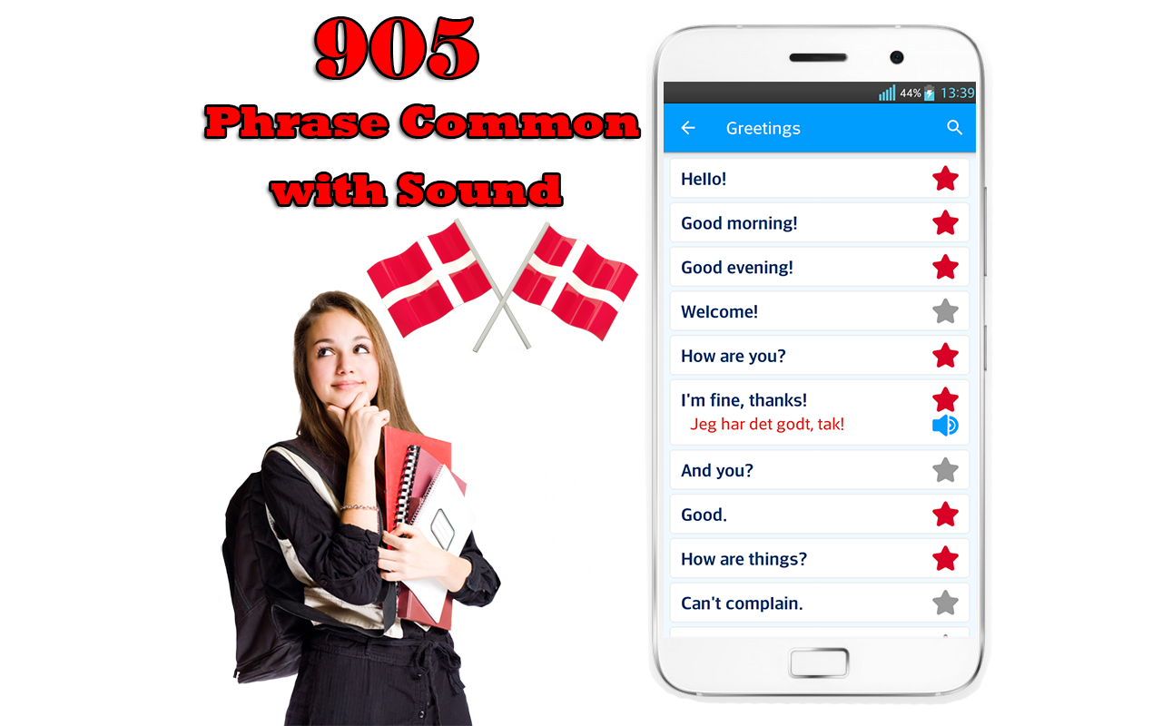 Learn Danish لديها 1305 عبارة شائعة باللغة الدنماركية بصوت وبدون شبكة