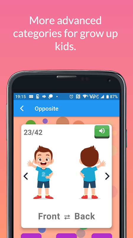 التطبيق سهل وآمن للاستخدام من خلال تحديد فئة لمراجعة البطاقات التعليمية والنقر على البطاقة للحصول على صوت وصور متحركة ممتعة!