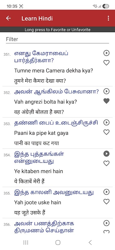يساعدك هذا التطبيق على تعلم اللغة الهندية المنطوقة من خلال التاميل، مما يُغنيك عن تعلم الكتابة الهندية.