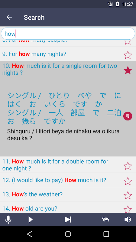 يشمل تعلم اللغة اليابانية على 5000+ العبارات، 65 فئات، و 200 الدرس النحوي